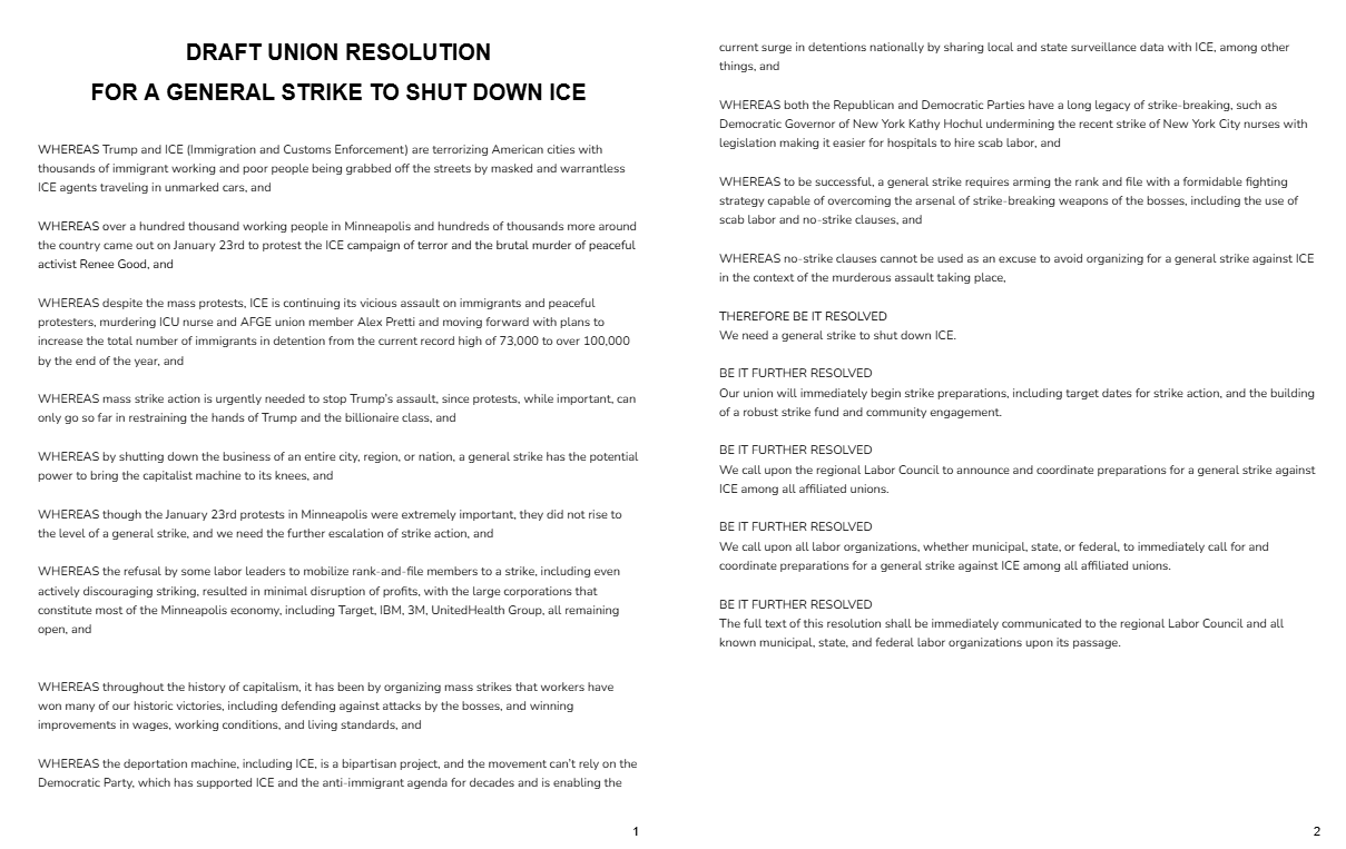 And if you’re in a union, use the draft resolution to fight for your union to join the push for a general strike.