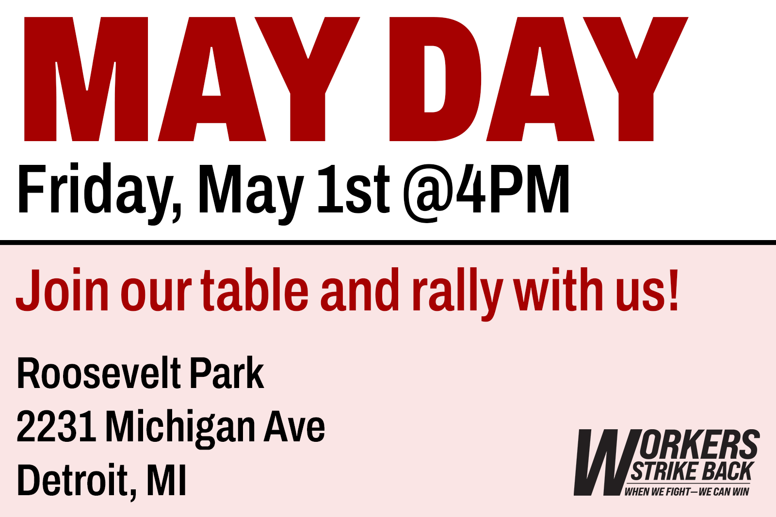 If you are in or around the Detroit area, join Workers Strike Back members on May day who will be tabling at Roosevelt Park!
