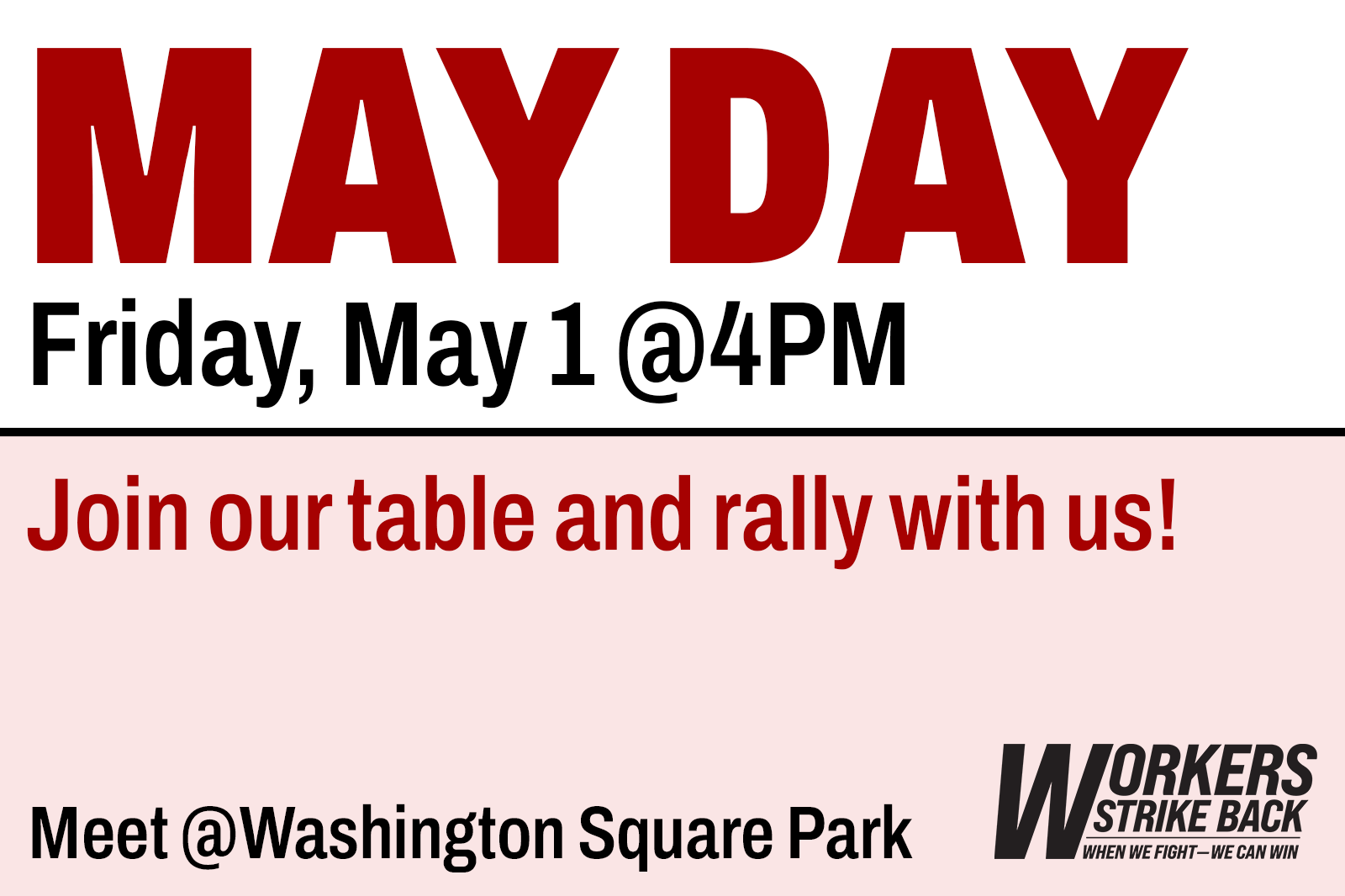 If you are in or around the New York area, join Workers Strike Back members on May day who will be tabling at Washington Square Park!