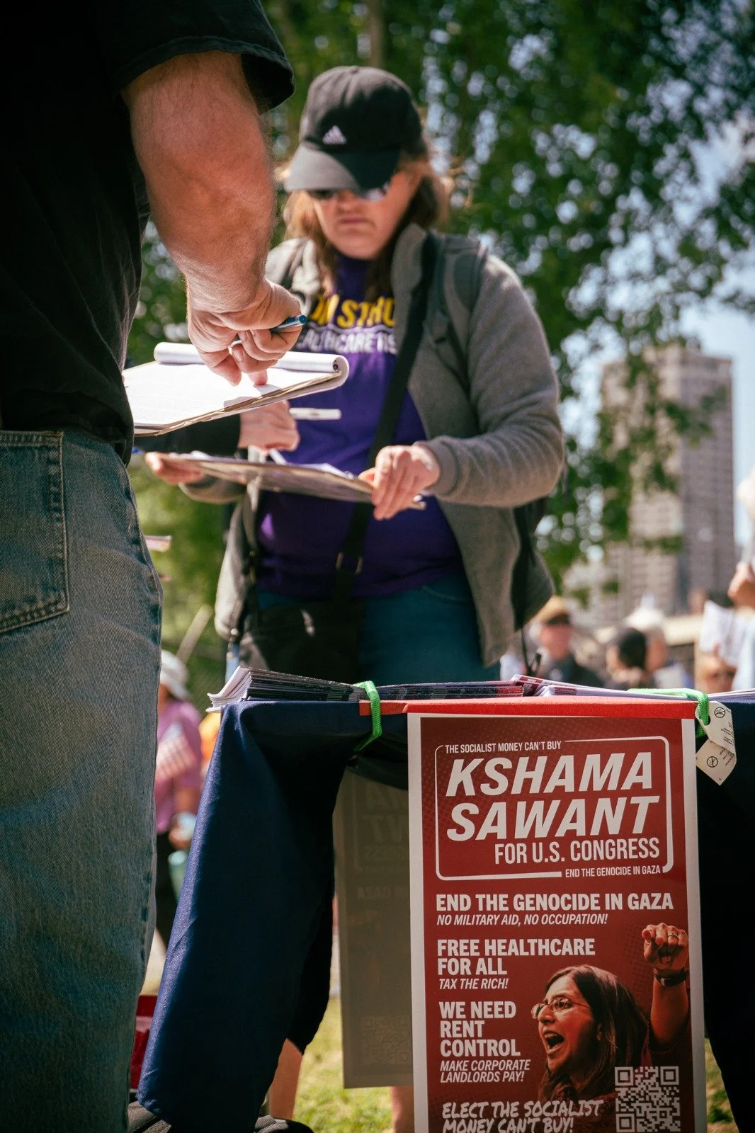 We urge all WSB members, regardless of which city you are in, to table using the petition and flyer, and tell working people about Kshama’s campaign. We have received strong support in every city nationally where our members have been campaigning. Help build the movement to send the socialist money can't buy to Congress!