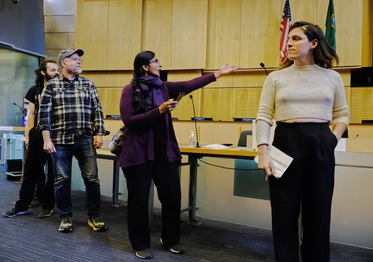 WSB members pushed back every time Council President Sarah Nelson attempted to shut us down. For example, when she tried to take away public comment from speakers we chanted “Let him/her speak” until she relented and gave the speaker their full time. When Nelson said “don’t clap”, we clapped louder. When she said “no chanting”, we chanted longer. When she accused us of breaking public comment rules, we pointed out the huge irony that the City Council showed no such loyalty to their own rules which they were attempting to repeal.