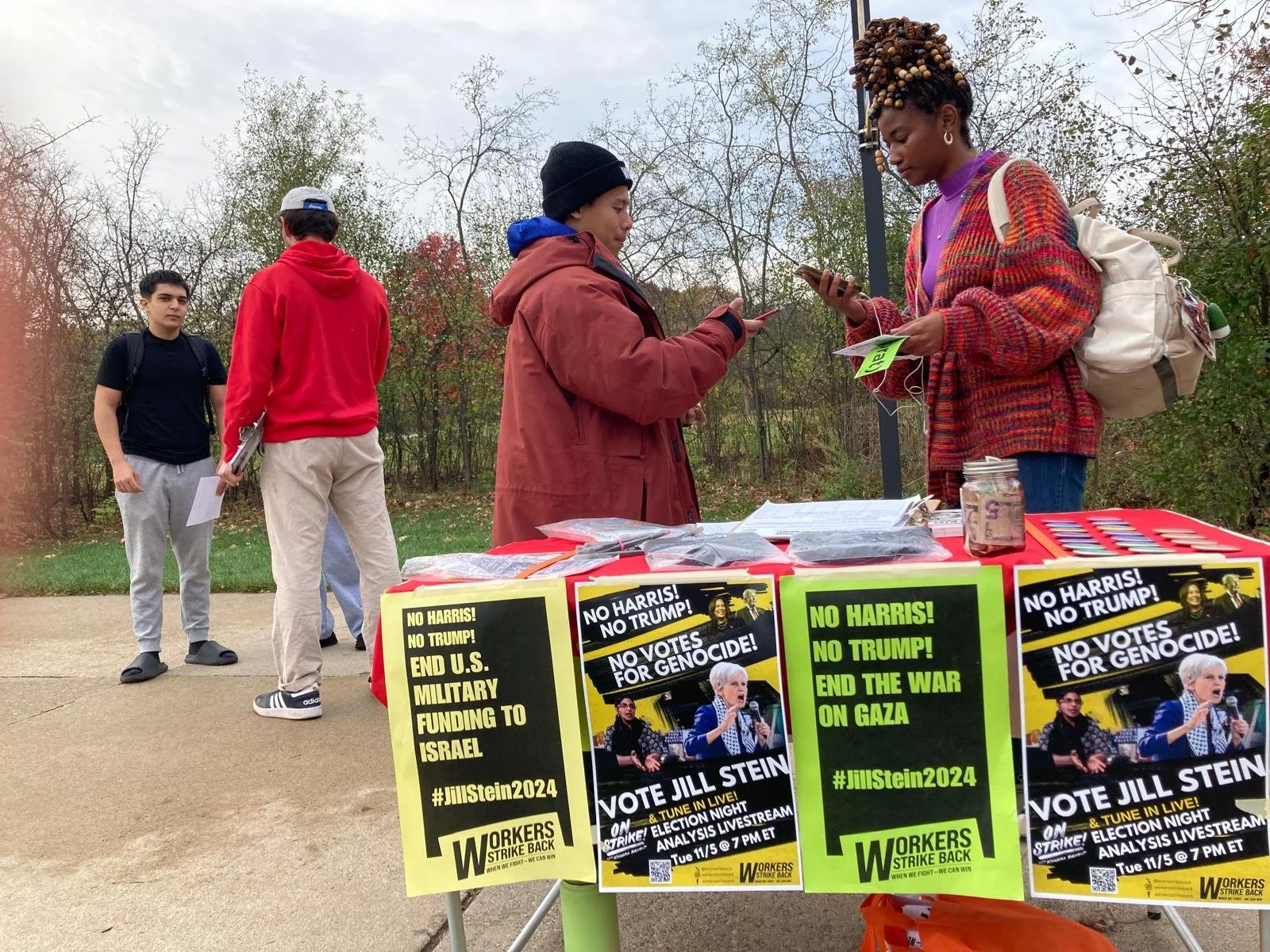 Workers Strike Back members from Boston, Kansas City, Chicago, Seattle, Ann Arbor and more convened in Dearborn for over a month, setting aside their personal lives to get out the vote for antiwar, pro-worker presidential candidate Jill Stein. In order to win every single possible antiwar vote we hit mosques, coffee shops, universities, and the doors with a clear message: No Votes for Genocide, No Harris, No Trump!